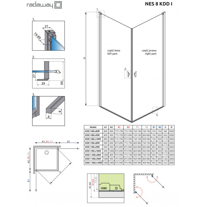 Коллекция Nes это одна из самых универсальных и многообразных коллекций душевых кабин, дверей и шторок. Створки двери в этой коллекции открываются и внутрь и наружу. Профили и фурнитура на выбор либо в цвете «хром», или «Black». Толщина стекла 6 или 8 мм. По стандарту стекло прозрачное или Frame/Factory. Под заказ есть доступны другие варианты цветов стекол.
