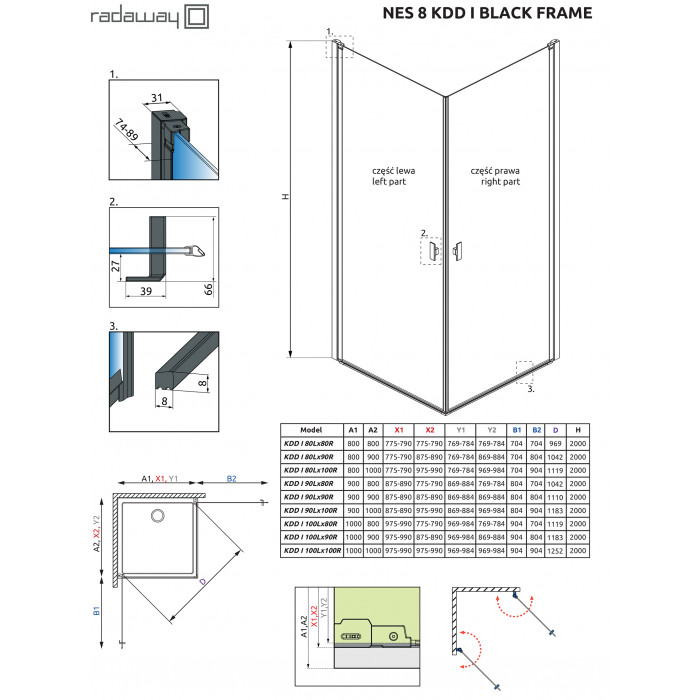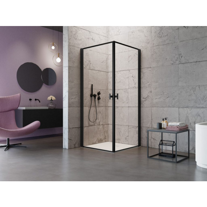 Коллекция Nes это одна из самых универсальных и многообразных коллекций душевых кабин, дверей и шторок. Створки двери в этой коллекции открываются и внутрь и наружу. Профили и фурнитура на выбор либо в цвете «хром», или «Black». Толщина стекла 6 или 8 мм. По стандарту стекло прозрачное или Frame/Factory. Под заказ есть доступны другие варианты цветов стекол.