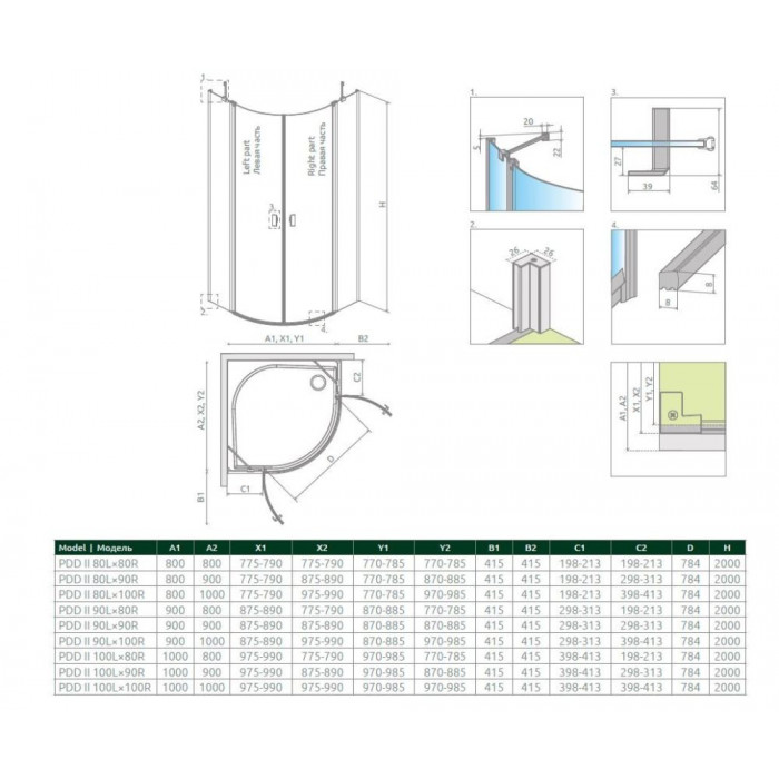 Эту душевую кабину возможно установить так на поддоне, как и непосредственно на пол.