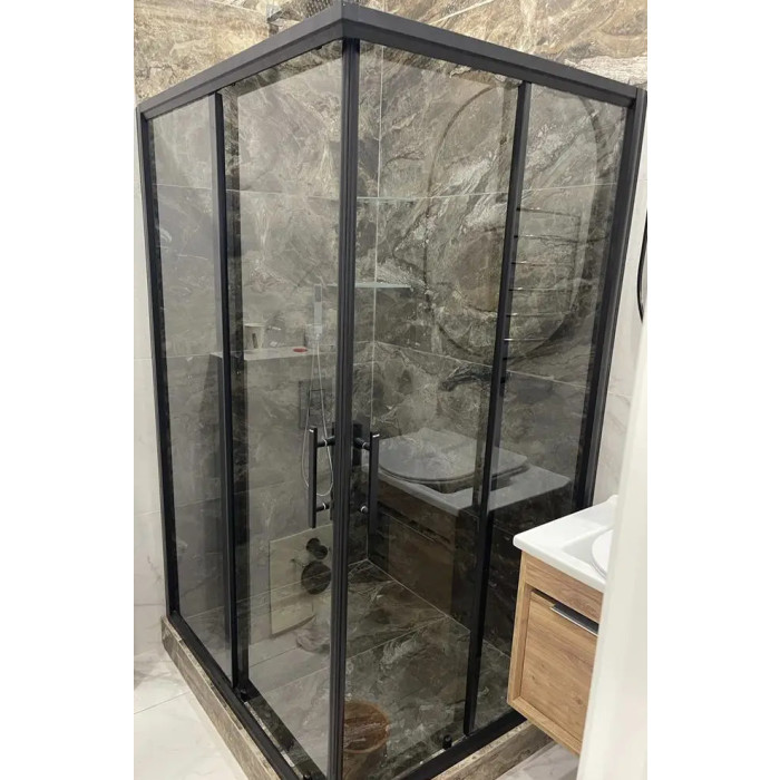 Стильный черный профиль: Черный алюминиевый профиль создает изысканный контраст с тонированным стеклом, придавая кабине современный и минималистичный вид. Это идеальный выбор для создания акцента в дизайне.