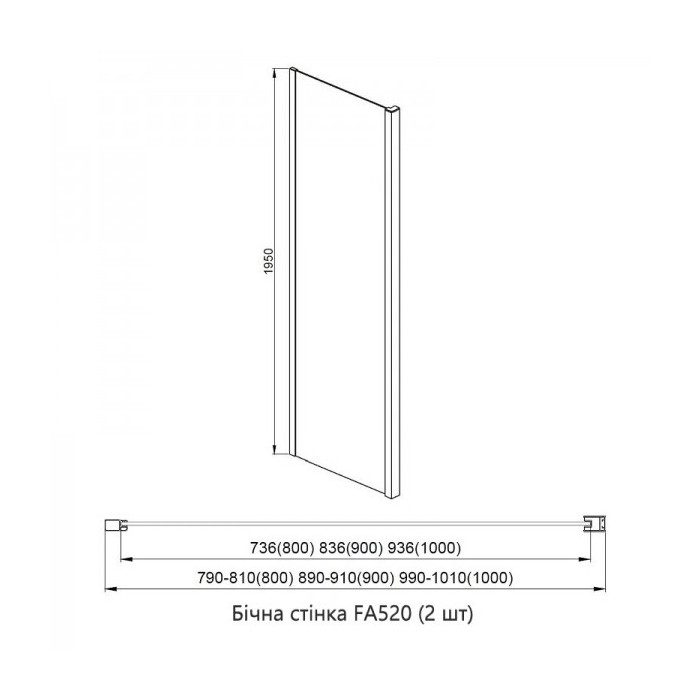Количество створок двери: 1 раздвижная, с глухой стенкой.