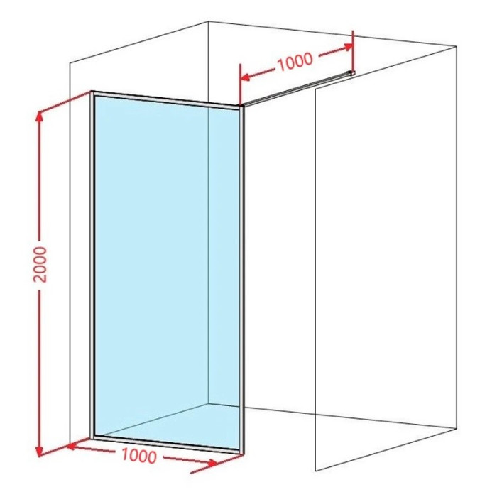 Перегородка душевая бездверная С КРОНШТЕЙНОМ (стационарная, Walk-in)