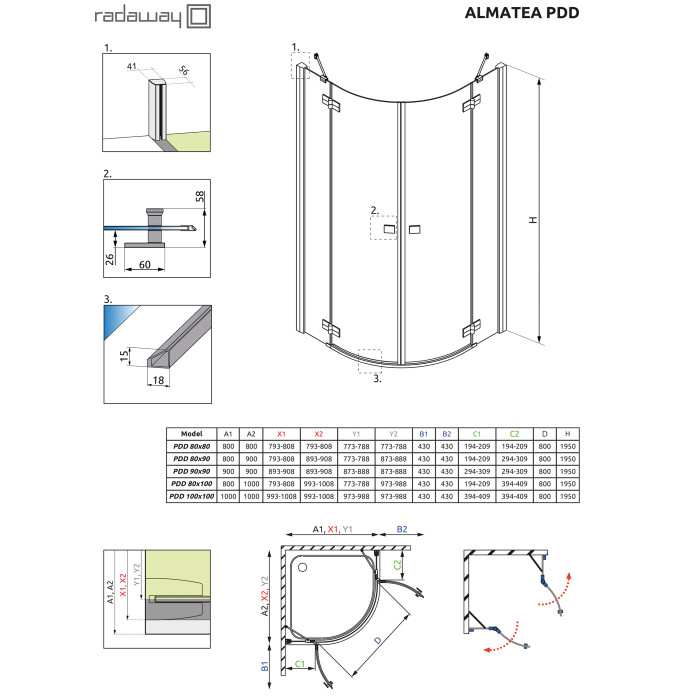 Коллекция Almatea это безпрофильные кабины с дверью открывающейся наружу. Кабины допускается устанавливать как на поддон, так и непосредственно на пол (но всега с планкой порога). В случае установки на плитку рекомендуем душевые плиты RadaDrain – для обеспечения гидроизоляции, слива воды в правильном направлении и быстроты монтажа. Almatea это хит продаж из-за оптимального отношения цены к качеству.