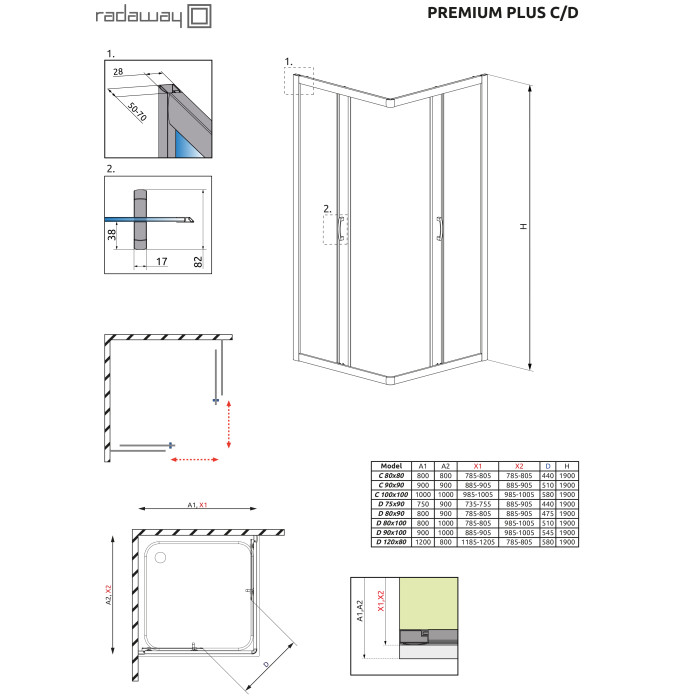 Коллекция Premium Plus характеризируется классическими формами, высокой функциональностью и эстетикой технических решений. Коллекция Premium Plus это хит продаж из-за оптимального отношения цены к качеству. Кабины серии Premium Plus допускается устанавливать как на поддоны, так и непосредственно на пол.
