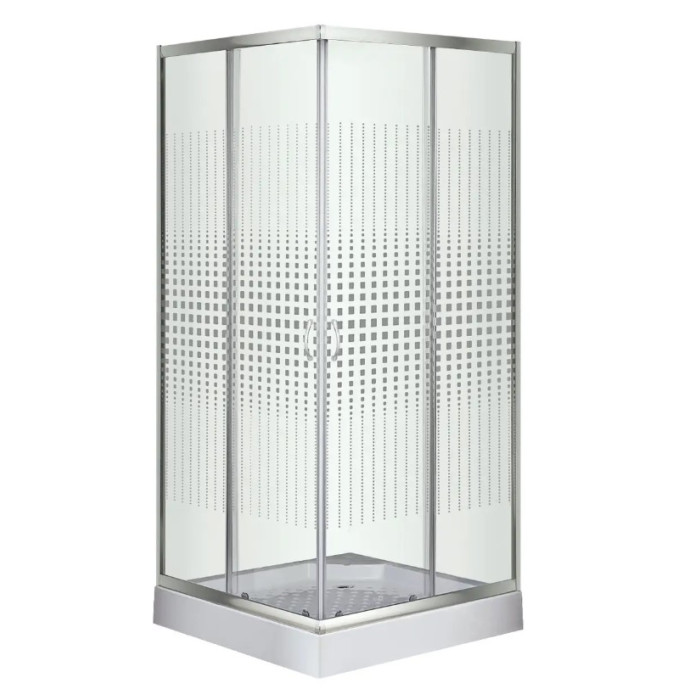 Sansa S-90S/15 — современная душевая кабина квадратной формы со стильным сатиновым профилем, которая сочетает в себе компактность и комфорт. Низкий поддон высотой 12 см и прозрачное стекло с мозаичным узором делают кабину лёгкой и элегантной. Раздвижные дверцы обеспечивают удобство использования даже в небольших ванных комнатах.