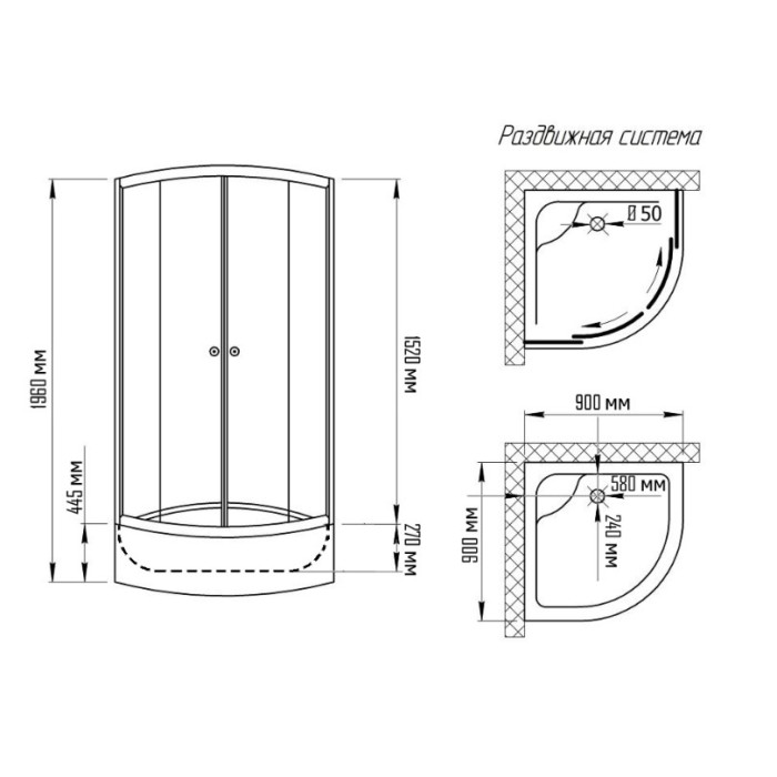 - Размеры: 90×90×195 см-идеально для стандартных санузлов
