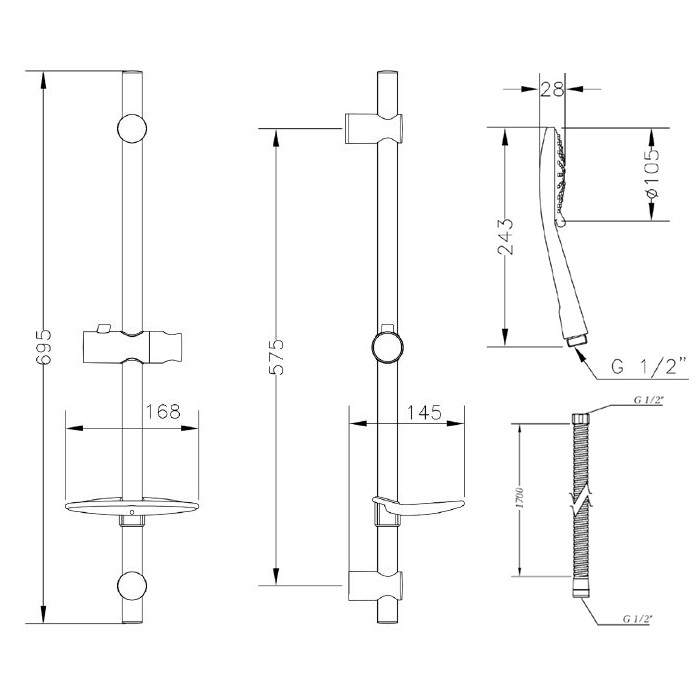 Душевой гарнитур со штангой GENEBRE Oslo OS17TA (DXT345+1001356000+163645)