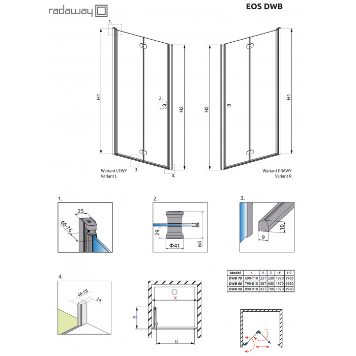 Коллекция Eos очень популярная из-за своей практичности. Широкий модельный рад и доступная цена это основные плюсы этой коллекции. В душевых кабинах Eos дверь открывается как наружу, так и внутрь.