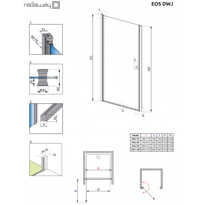 Коллекция Eos очень популярная из-за своей практичности. Широкий модельный рад и доступная цена это основные плюсы этой коллекции. В душевых кабинах Eos дверь открывается как наружу, так и внутрь.