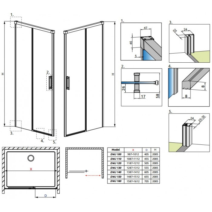 Возможность демонтировать и наклонять дверь для чистки кабины.