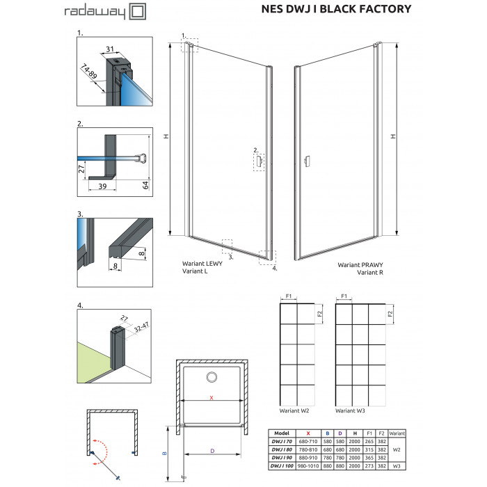 Коллекция Nes это одна из самых универсальных и многообразных коллекций душевых кабин, дверей и шторок. Створки двери в этой коллекции открываются и внутрь и наружу. Профили и фурнитура на выбор либо в цвете «хром», или «Black». Толщина стекла 6 или 8 мм. По стандарту стекло прозрачное или Frame/Factory. Под заказ есть доступны другие варианты цветов стекол.