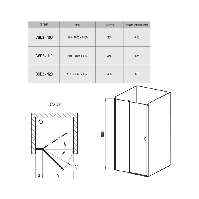 Благодаря цилиндрическому профилю, который заменяет дверные петли, душевой уголок обладает максимальной прочностью и флексибильностью, что позволяет открывать двери как вовнутрь, так и наружу душевого уголка. Двери предназначены для установки в нише, и не комбинируются с неподвижной стенкой.