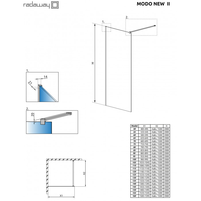Тип: Перегородка (Walk-in)Неподвижное стекло