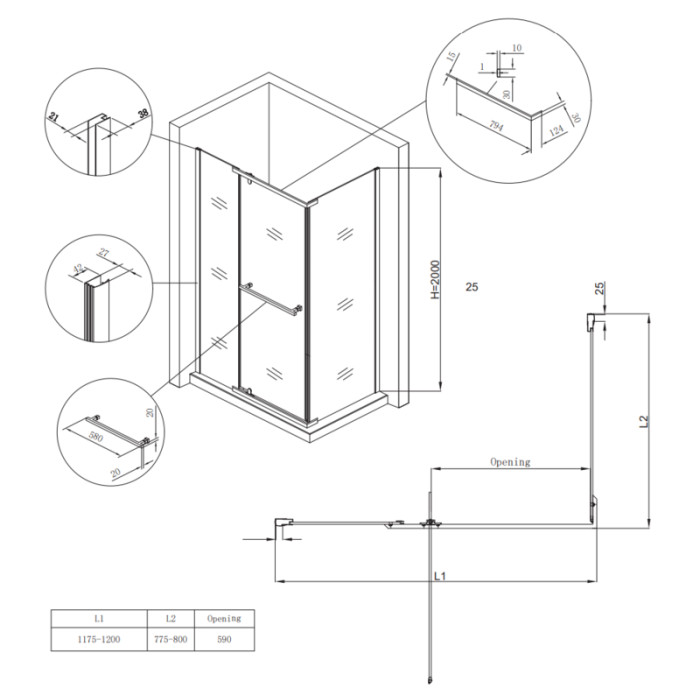 | ⬆️ Высота: 200 см | ⚪ Цвет стекла: Прозрачный |