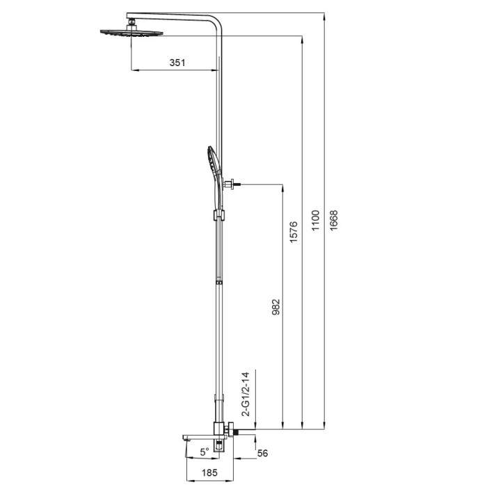 📏 Регулируемая Высота: Максимальная высота 1668 мм, минимальная 1100 мм – настройте душ под свой рост.