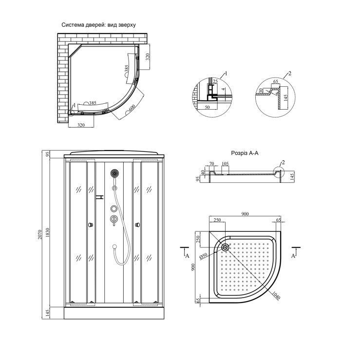 - Компактный размер (90x90 см) и форма четверти круга — идеально для небольших помещений