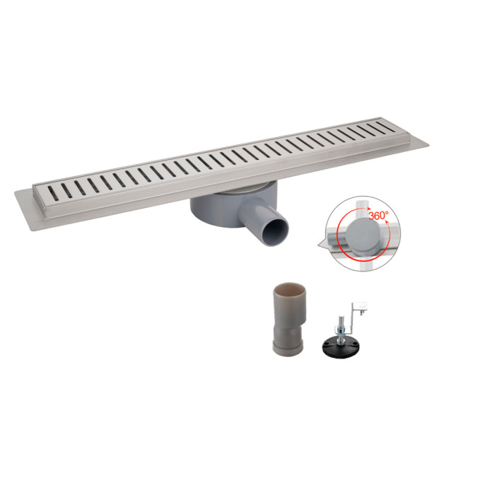 ⚙️ Полный комплект для установки: В комплекте вы найдете все необходимое: водоотводящий желоб, решетку, гидроизоляционную ленту, комбинированный гидрозатвор SMART, опорные ноги и монтажный крючок.