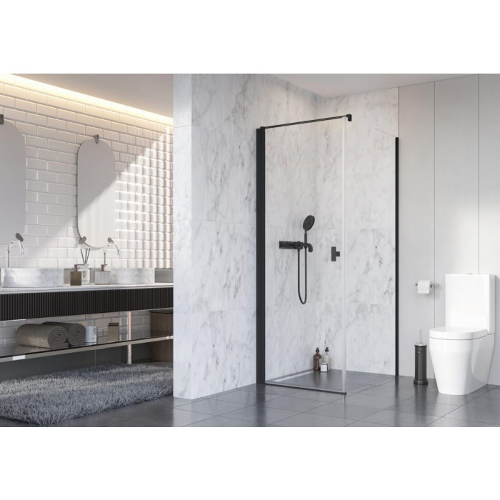 Nes Black — это кабины, двери и шторки на ванну — с фурнитурой в цвете «Black». Дополнительно несколько моделей Nes Black доступно со стеклом Frame/Factory на котором черные полоски изготовлены из устойчивой, керамичной краски.