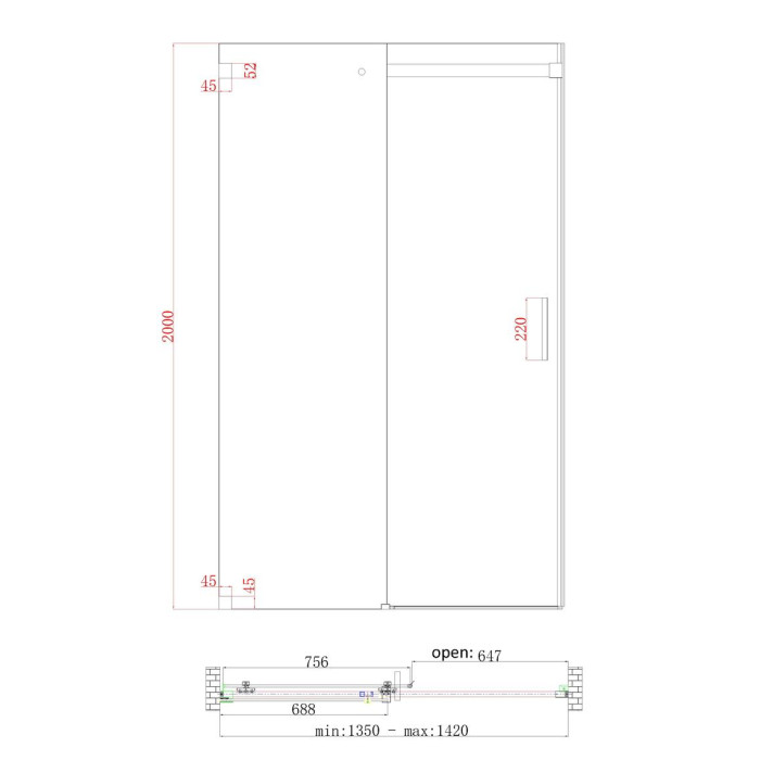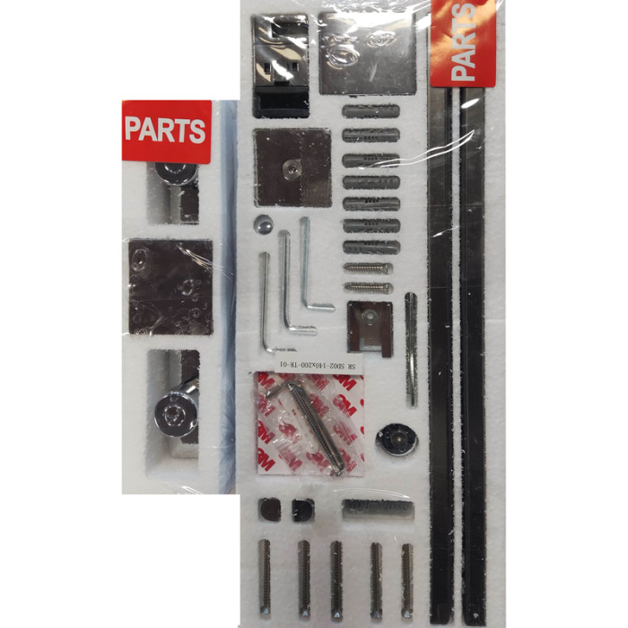 | 🔧 Комплектация: | Стеклянные реверсивные двери, профиль, верхняя рейка, нижняя алюминиевая водонепроницаемая планка, ручка, верхние ролики, система нижних ползунов, крепеж, уплотнители, заглушки. |