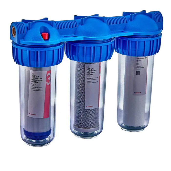 💧 Многоступенчатая очистка: Оснащен тремя колбами и тремя сменными картриджами (PPR, прессованный и гранулированный уголь) для комплексного удаления ржавчины, хлора, органических веществ и улучшения вкуса воды.