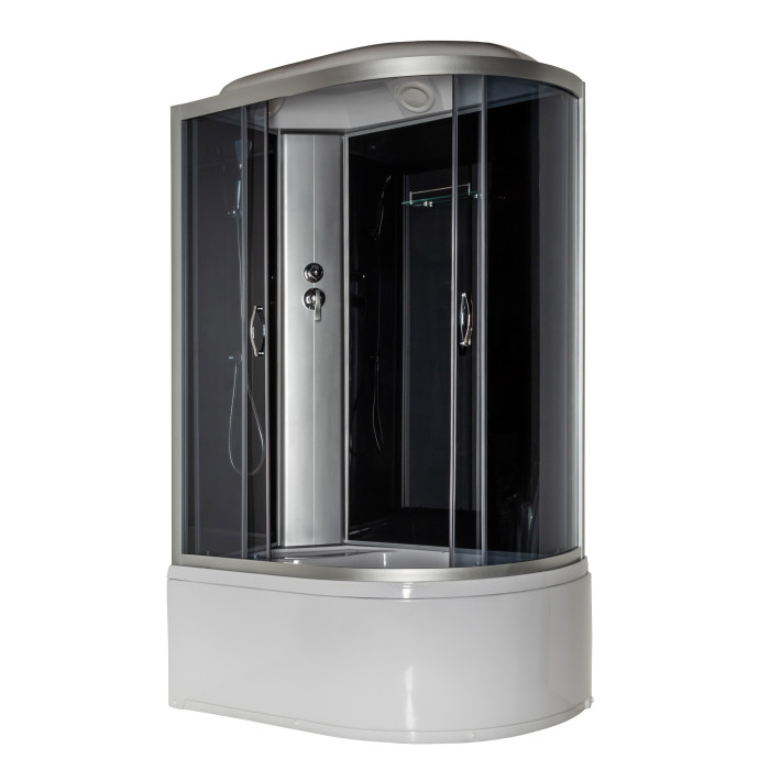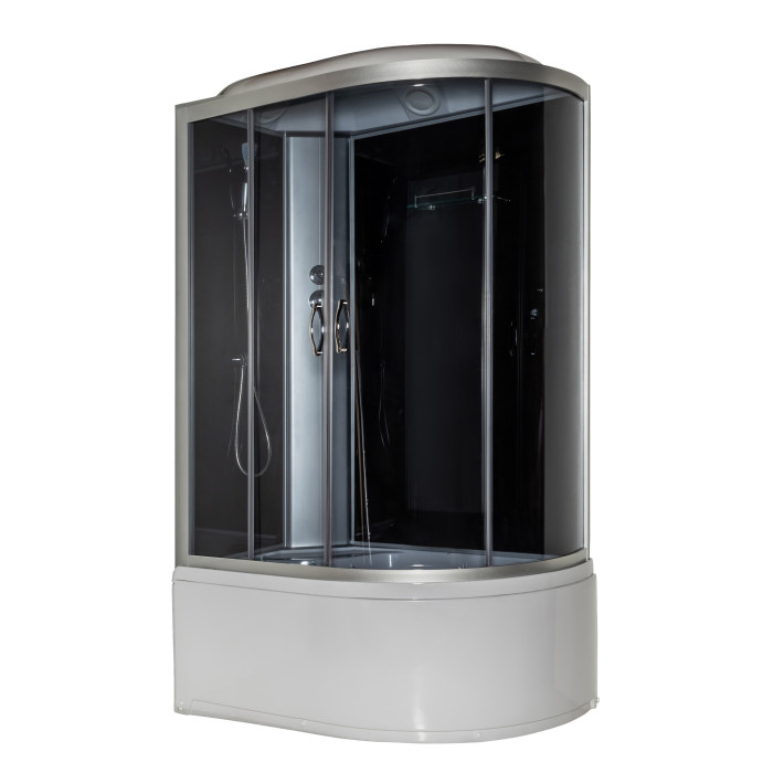 Розміри: Нестандартна асиметрична форма 120x80x215 см дозволяє ефективно використовувати кут ванної кімнати. Глибокий піддон висотою 48 см забезпечує комфорт під час прийняття водних процедур.