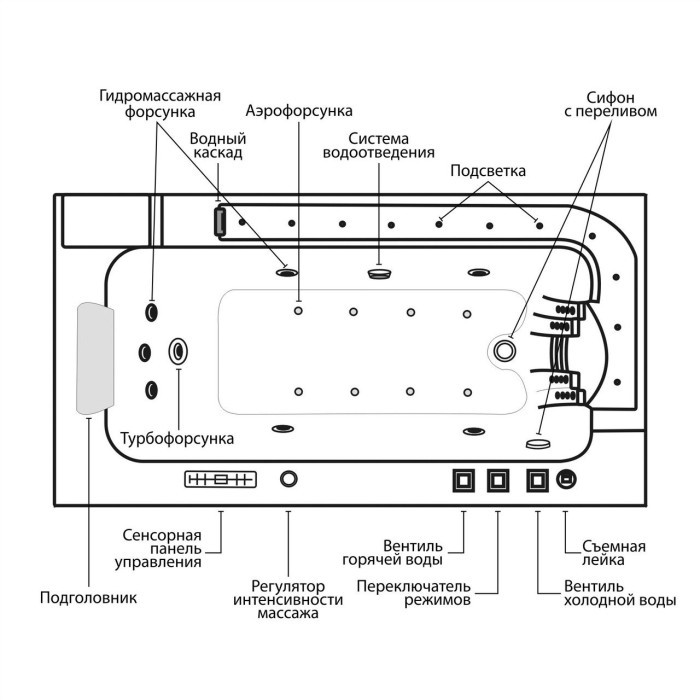 💦 Гидро- и аэромассаж — 8 форсунок для массажа тела и спины.