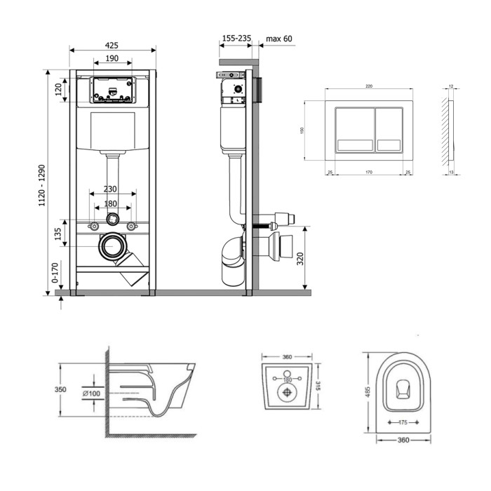 ✨ Материалы: Керамика (унитаз), металл/ABS пластик (инсталляция), ABS пластик (панель смыва), дюропласт (сиденье).