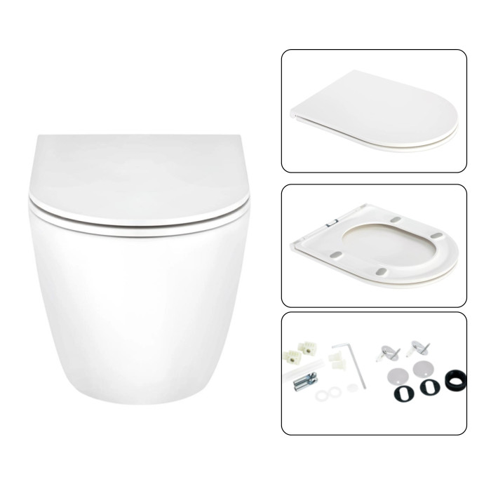 ✨ Высококачественные Материалы: Унитаз из прочной керамики, сиденье из дюропласта, инсталляция из металла/ABS пластика – всё для долговечности и комфорта.