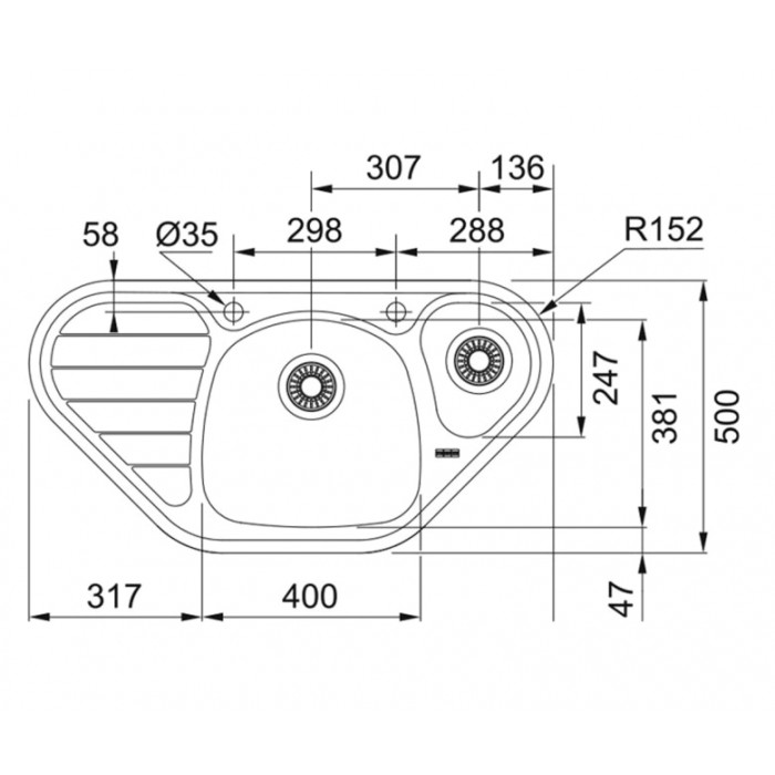 Размер мойки 960х500 мм