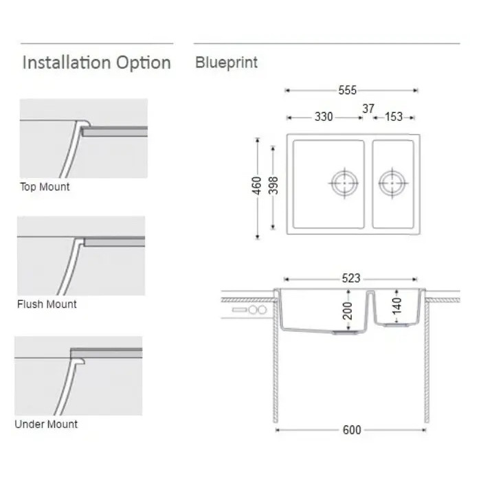 Размер чаши 398 x 330 / 398 x 153 мм.