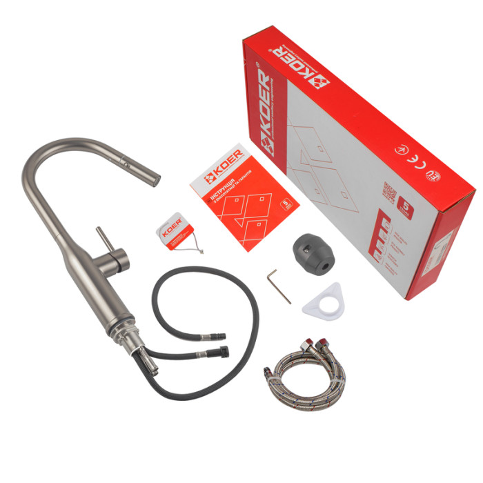 🌟 Основные преимущества KOER KI-70004-07💧 Удобство выдвижного излива: Легко достает до каждого уголка мойки, облегчая мытье крупногабаритной посуды и овощей.