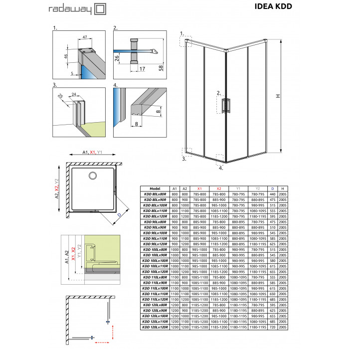 Коллекция Idea это новинка 2016г. в ассортименте Radaway. Первая коллекция в стиле настоящего минимализма — двойные ролики спрятаны внутри профилей, на пристенных профилях отсутствуют даже заглушки болтов — в место них маскоровочная лента Nastro Chromo. Все изделия из этой коллекции допускается устанавливать как на поддон так и непосредственно на пол. Кроме того, все изделия допускается устанавливать с порогом или без порога меняя нижний фиксатор (в комплекте).