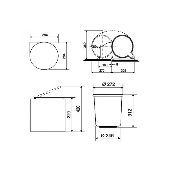 Монтаж конструкции возможен в тумбу шириной от 40 см, крепление на боковую стенку и распашную дверку.
