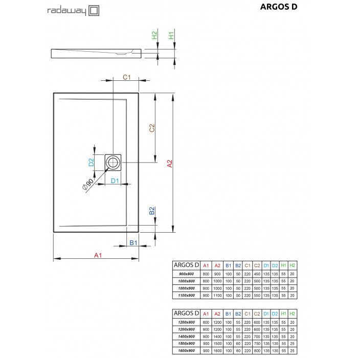Сливное отверстие, мм: 90