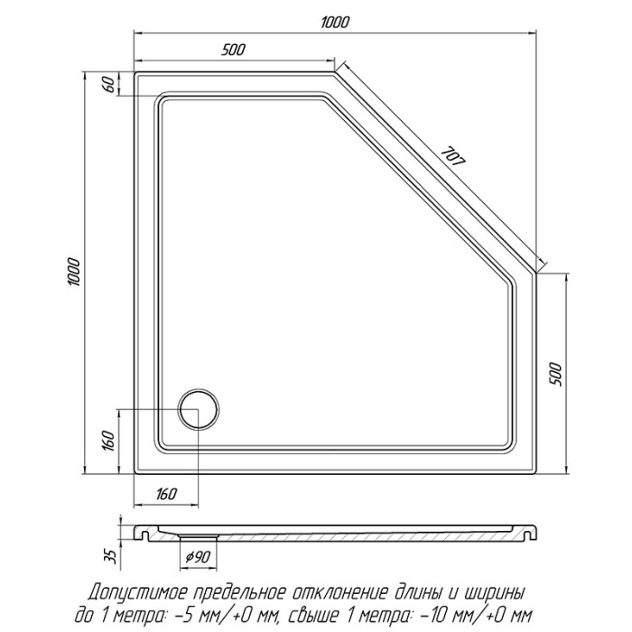 Форма поддона пятиугольная