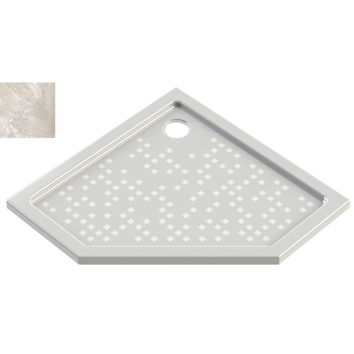 Поддон «Белла» имеет пятиугольную форму, что отличает его от привычных стандартных форм. Поверхность этого поддона имеет интересный и оригинальный рисунок с шероховатой текстурой, которая носит характер антискользящего покрытия, благодаря чему уменьшается риск поскользнуться во время принятия душа. Душевой поддон имеет небольшую глубину и стандартное сливное отверстие диаметром 90 мм. Душевые поддоны представлены в двух вариантах по высоте внешнего борта: с высотой 40мм(стандартный вариант), а также с высотой 25мм для монтажа в пол. Поддоны можно устанавливать в пол, на пол или же с помощью монтажного комплекта на ножки с экраном.