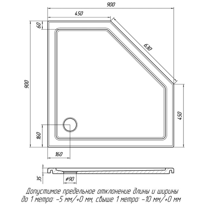 Форма поддона пятиугольная