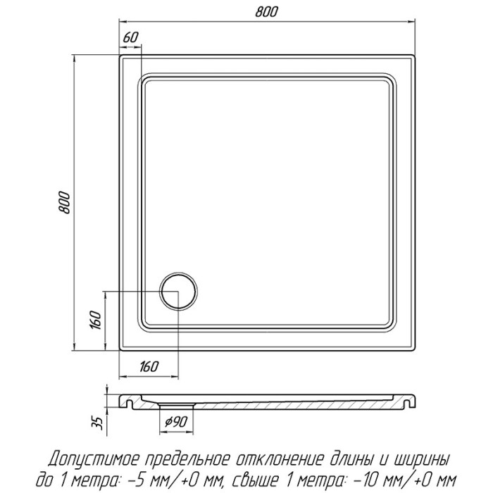 Форма поддона квадратная