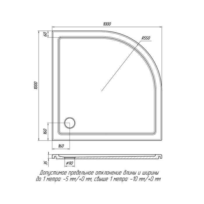 Поддон «Жасмин» имеет радиальную форму и предназначен для размещения душевой кабины в углу, что позволяет уменьшить занимаемое пространство и, в то же самое время, закруглённый угол придаёт плавность линий и гармонию в интерьере Вашей ванной комнаты. Поверхность этого поддона имеет рисунок с шероховатой текстурой, которая носит характер антискользящего покрытия, благодаря чему уменьшается риск поскользнуться во время принятия душа. Душевой поддон имеет небольшую глубину и стандартное сливное отверстие диаметром 90 мм. Душевые поддоны представлены в двух вариантах по высоте внешнего борта: с высотой 40мм(стандартный вариант), а также с высотой 25мм для монтажа в пол. Поддоны можно устанавливать в пол, на пол или же с помощью монтажного комплекта на ножки с экраном.