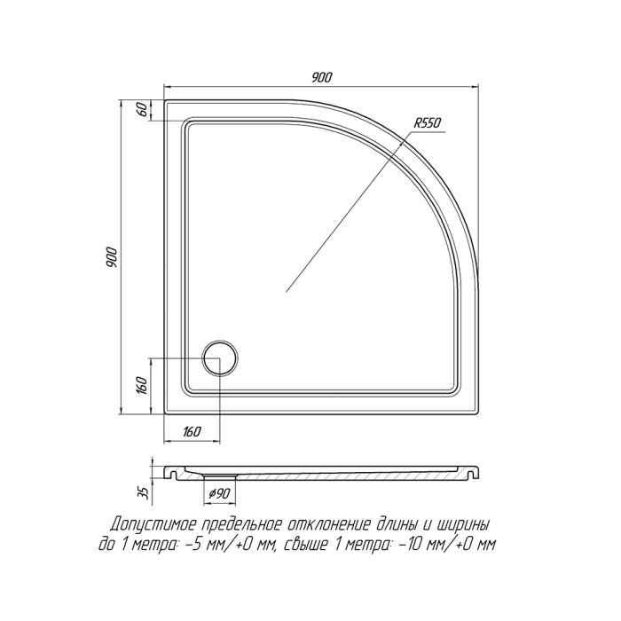 Форма поддона радиусная