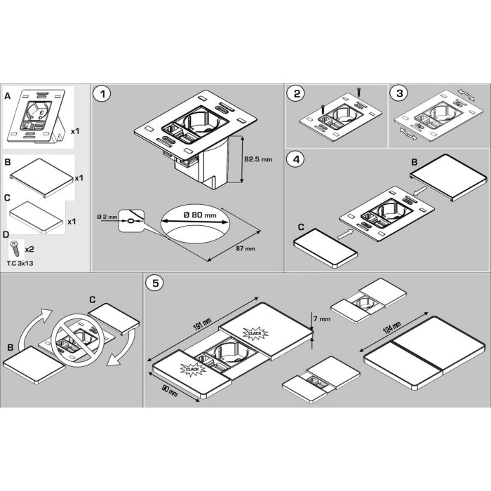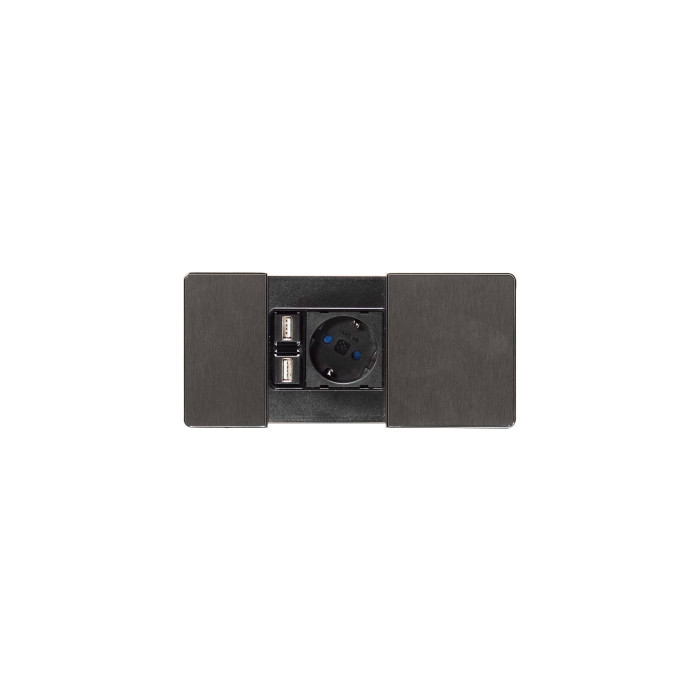 Корпус оснащен влагозащитой IP20 и имеет скользящую крышку, которая открывается путем нажатия на нее, а затем сдвигается в сторону и открывает доступ к гнездам. Данная модель предлагает 1 электрическую розетку (230В, 50 Гц) и USB-разъем (5В). Габариты конструкции в закрытом состоянии составляют 12,4х9 см. Диаметр монтажного отверстия - 8 см.