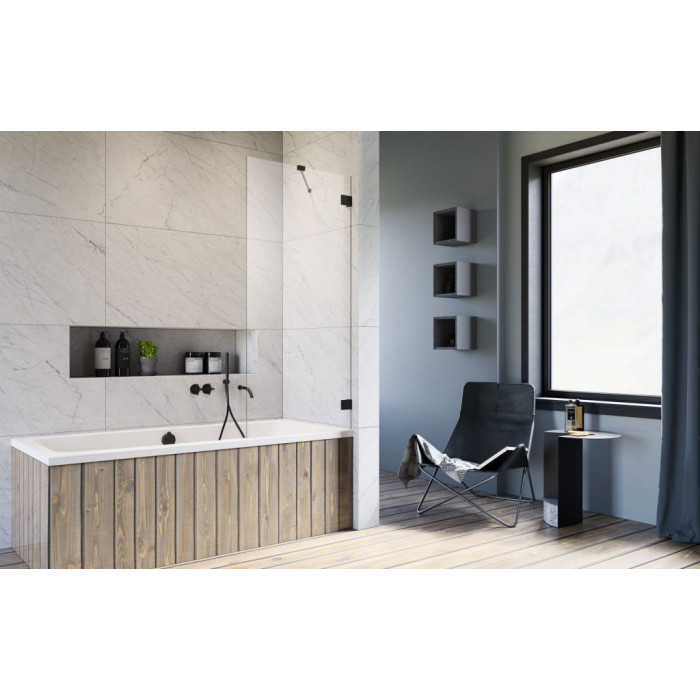 Essenza Pro — коллекция кабин разных форм, дверей и шторок, в которых стационанрое стекло закреплено к стене с помощью кронштейна, а не профиля. Допустимы два варианта монтажа: с уплотнительным профилем, или без него.