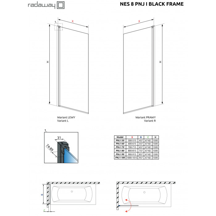 Коллекция Nes это одна из самых универсальных и многообразных коллекций душевых кабин, дверей и шторок. Створки двери в этой коллекции открываются и внутрь и наружу. Профили и фурнитура на выбор либо в цвете «хром», или «Black». Толщина стекла 6 или 8 мм. По стандарту стекло прозрачное или Frame/Factory. Под заказ есть доступны другие варианты цветов стекол.