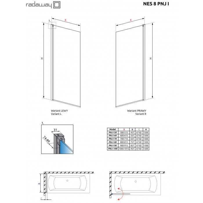 Коллекция Nes это одна из самых универсальных и многообразных коллекций душевых кабин, дверей и шторок. Створки двери в этой коллекции открываются и внутрь и наружу. Профили и фурнитура на выбор либо в цвете «хром», или «Black». Толщина стекла 6 или 8 мм. По стандарту стекло прозрачное или Frame/Factory. Под заказ есть доступны другие варианты цветов стекол.