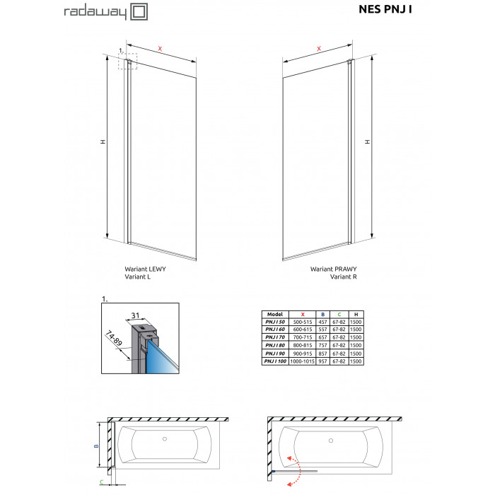 Коллекция Nes это одна из самых универсальных и многообразных коллекций душевых кабин, дверей и шторок. Створки двери в этой коллекции открываются и внутрь и наружу. Профили и фурнитура на выбор либо в цвете «хром», или «Black». Толщина стекла 6 или 8 мм. По стандарту стекло прозрачное или Frame/Factory. Под заказ есть доступны другие варианты цветов стекол.