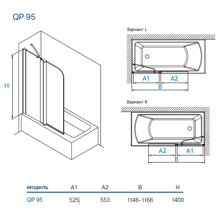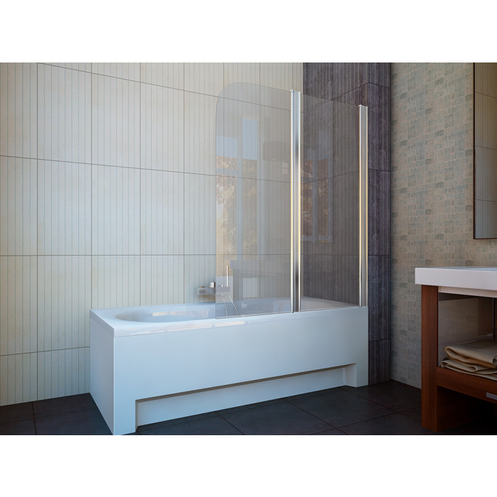 Двухэлементная профильная штора на ванну в комплекте с хромированным держателем. Открывание шторы возможно только наружу, если держатель крепится изнутри. Доступны право и левосторонние варанты исполнения.