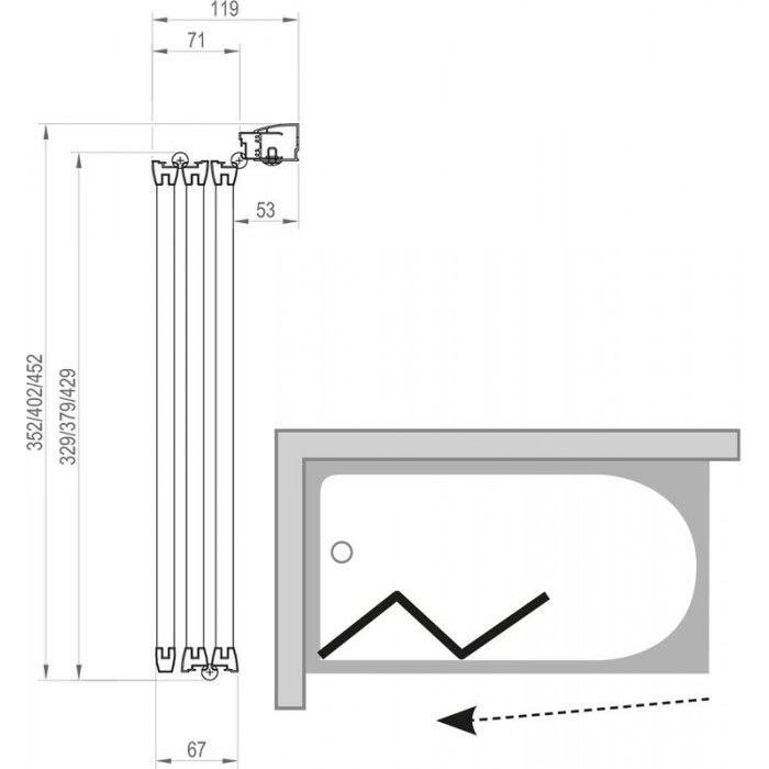 Штора состоит из трех подвижных частей, которые складываются вовнутрь ванны. Штора подходит для ванны BeHappy и других прямоугольных ванн с ровным передним бортом (Classic, Sonata, Vanda II и Lilia) или какой-либо классической прямоугольной ванны с ровным передним бортом. Стандартная высота шторы 1400 мм. Штора для ванны VS3 100 предназначена для ванны BeHappy 150, VS3 115 - BeHappy 160, VS3 130 - BeHappy 170. Штора для ванны VS3 100 в сложенном виде имеет ширину 340 мм, VS3 115 — 392 мм, а VS3 130 - 444 мм. Повернув VS3 на 180°, получите Л/П варианты входа. Возможно изготовление атипичной шторы для ванны.
