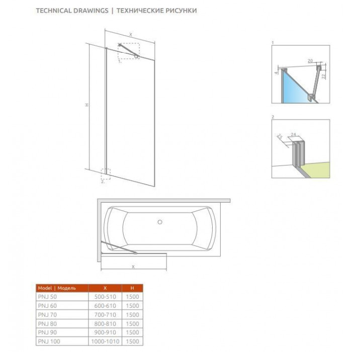 Стекло крепится к стене с помощью пристенных профилей (с регулировкой).