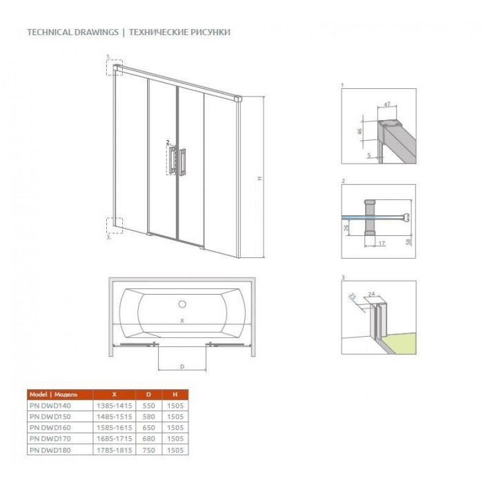 Стекло крепится к стене с помощью пристенных профилей (с регулировкой).