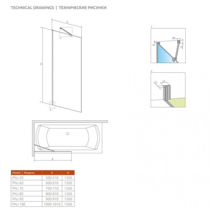 Стекло крепится к стене с помощью пристенных профилей (с регулировкой).